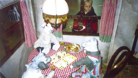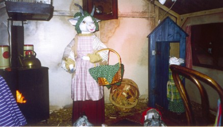 Bij ieder huisje is een geluidje aanwezig hier uit zijn de klanken van Dick Rienstra te horen die de verhaaltjes van de sprookjes verteld.