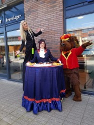 Een tafeldame geschikt voor winkelcentrum, bedrijf recepties etc. Zij kan alle soorten producten serveren alles in overleg.